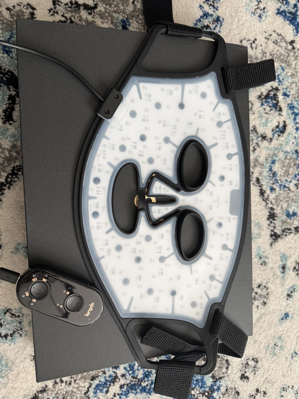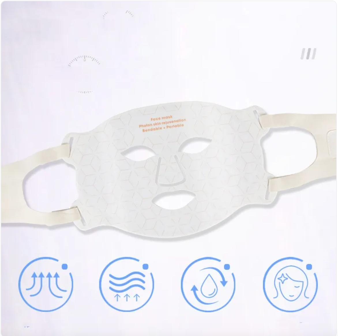 Made from soft, skin-friendly silicone, the mask comfortably adapts to different face shapes. The adjustable straps ensure a secure and relaxing treatment experience.